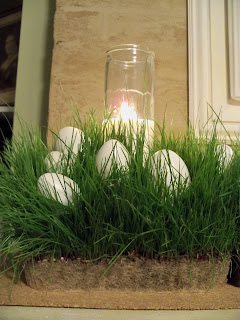 Keep it simple by placing white eggs in and around a block of wheat grass with a candle in the center.